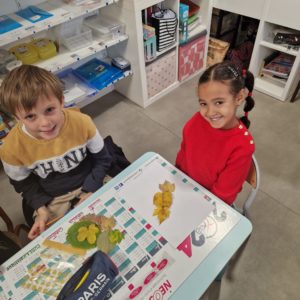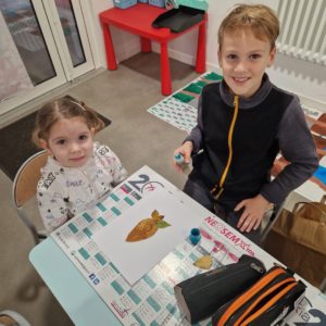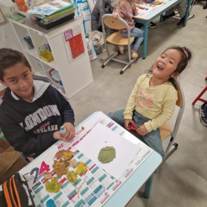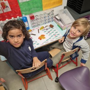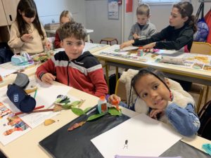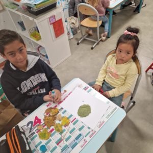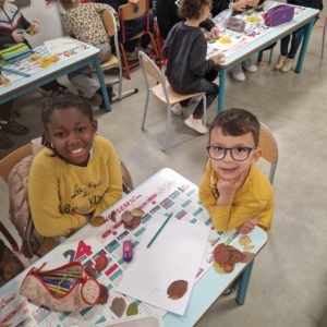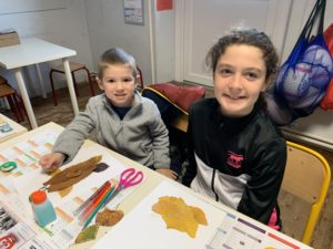 Une moitié des MS-GS de la classe de Gwénaëlle est venue chez les CM1 pour rencontrer leur tuteur et l’autre moitié attendait leur tuteur dans leur classe.