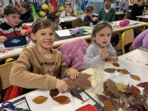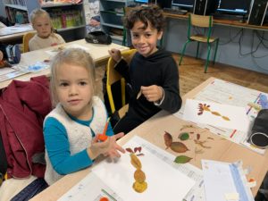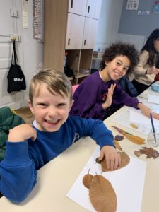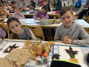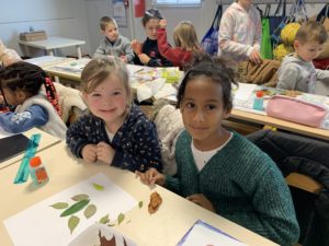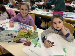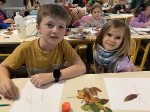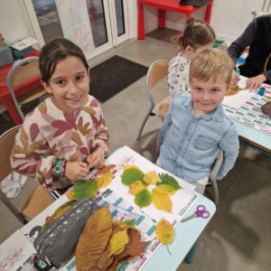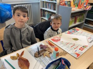 Nous avons partagé un goûter et surtout un moment artistique autour de la création de personnages ou d’animaux avec des feuilles d’arbres. Nous nous sommes inspirés de l’artiste Tang Chiew Ling.