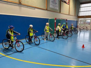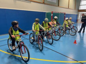 Le jeudi 15 et le vendredi 16 janvier, les élèves de CM2 ont passé leur « permis vélo », encadrés par deux gendarmes de la prévention routière. Ce fut l’occasion de mettre en pratique les règles de bonne conduite étudiées en classe.