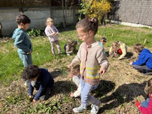 Du blé a poussé car le terrain a été paillé. Il a fallu apprendre à l’identifier afin de ne pas arracher les plantes comme la ciboule… Nous avons appris à mettre ses doigts à la base de la tige avant de tirer afin d’obtenir la racine. Nous avons essayé d’arracher les pissenlits et le chiendent. A la fin de la séance, Antoine nous a présenté les plantes de cet espace où nous pourrons déguster dans quelques temps des framboises, des fraises, des groseilles, des noisettes, de la rhubarbe, de la ciboule..